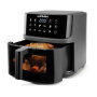 Ovaj keramički obloženi dvostrani dodatak bez PFAS-a proširuje mogućnosti vaše friteze na vrući zrak s dvije specijalizirane opcije kuhanja: Rešetka za roštilj koja pruža okus kuhanja na otvorenom plamenu - uključujući tragove pečenja - bez nereda, ugljenisanja i muke čišćenja. Hrskava tava za pečenje i pizzu, dizajnirana za savršeno prženje vaše omiljene hrane na vrućem zraku ili pečenje tijesta za pizzu do savršene ravnoteže mekoće i hrskavosti, dok se preljevi tope i ravnomjerno spajaju.