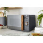 Vrata s efektom ogledala i drvenasta ručka stvaraju moderan dojam, dok je unutrašnjost mikrovalne jednostavna za čišćenje – idealna kombinacija estetike i praktičnosti.