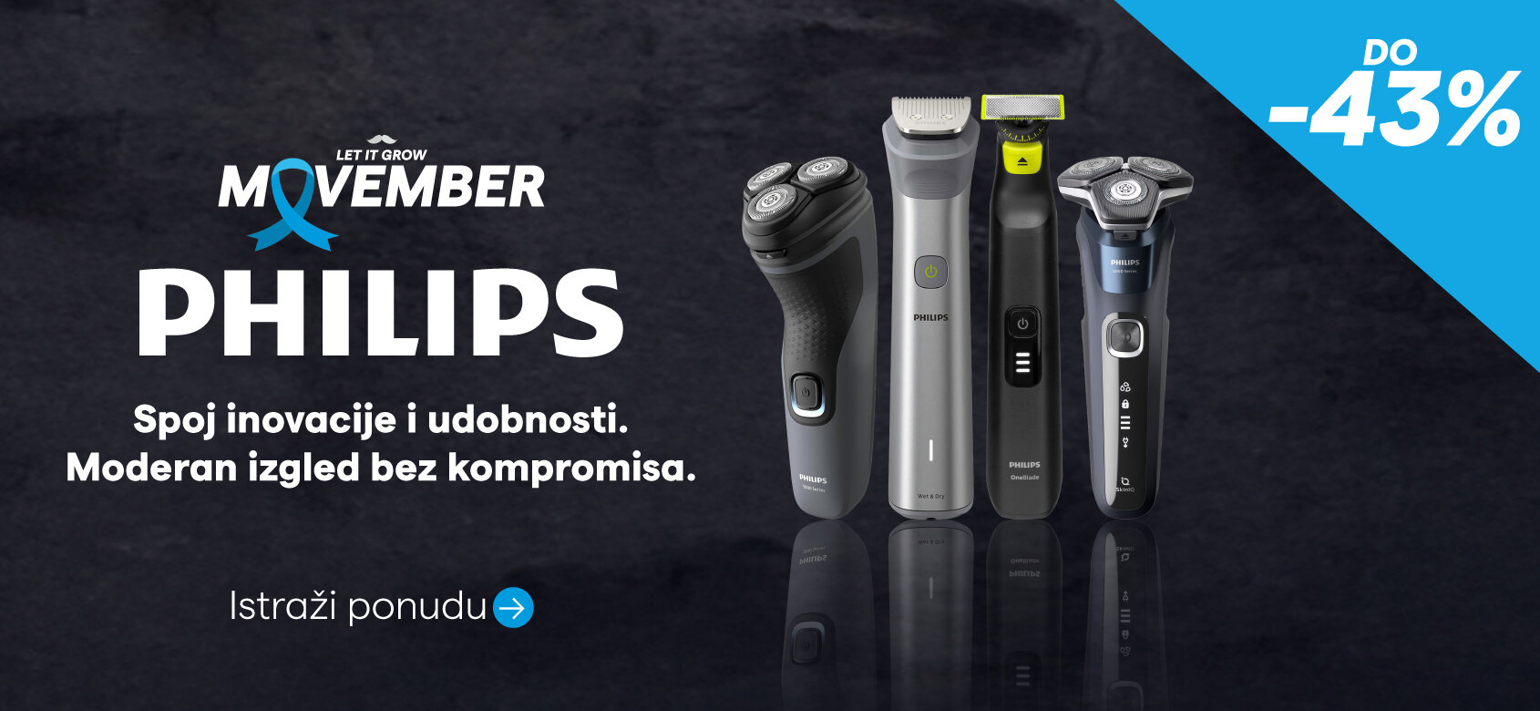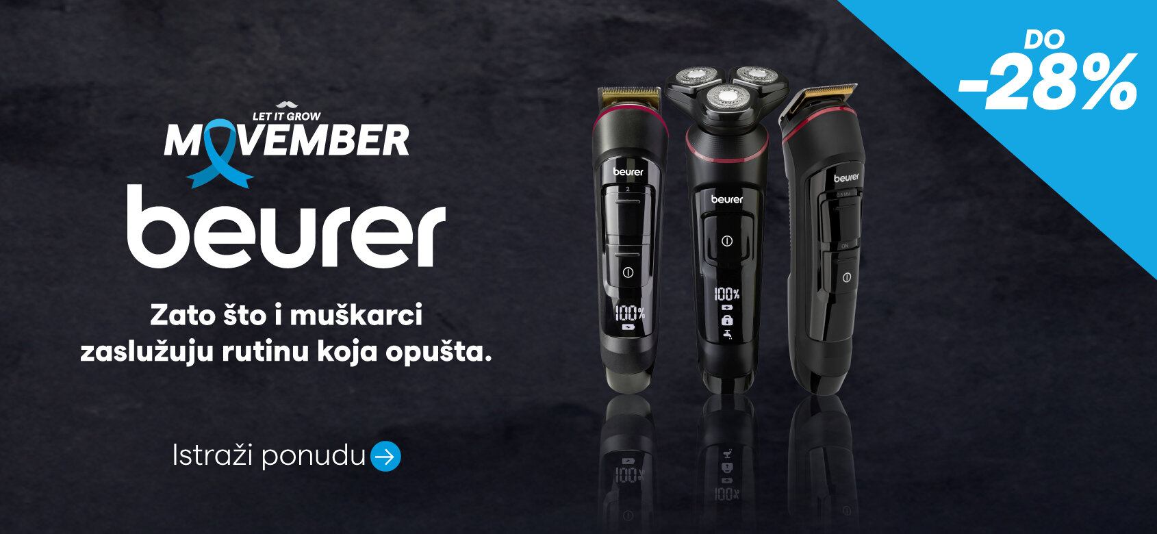 Tehnomag i ove godine podržava Movember! U saradnji s brendovima Panasonic, BaBylissMEN, Braun, Rowenta, Philips i Beurer nudimo do 57% popusta na uređaje za osobnu njegu muškaraca.