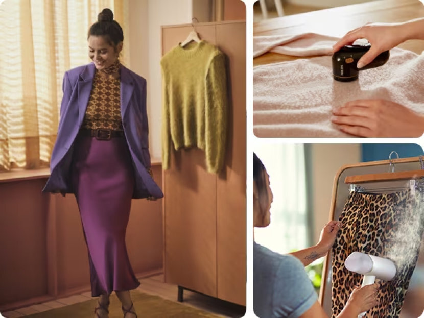 Jednostavno uklanjanje nabora i osvježavanje odjeće bez daske za peglanje. Odaberite kompaktni steamer, za par odjevnih kombinacija, ili samostojeći steamer za cijelu garderobu.