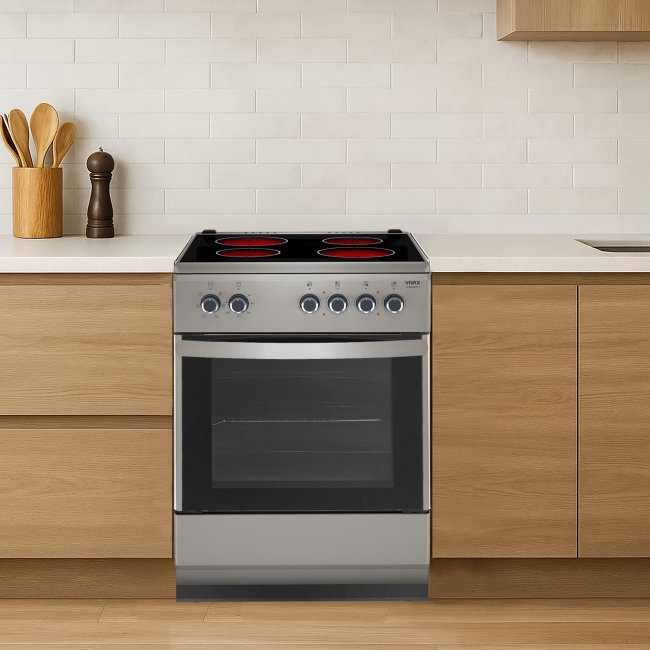 VIVAX samostojeći štednjak FC-04602VCF S je vrhunski model električnog štednjaka sa četiri staklokeramičke grijaće ploče.