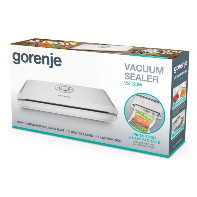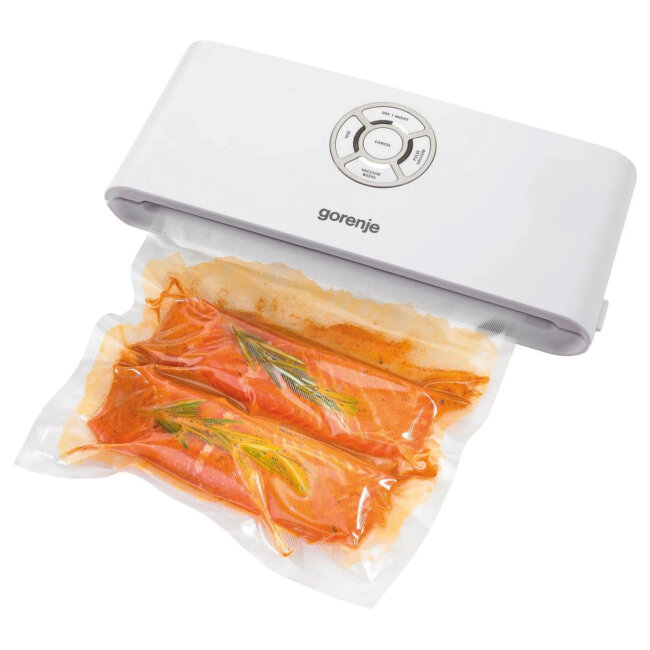Aparat za vakumiranje Gorenje je idealan dodatak kuhinji sa svojim stilizovanim dizajnom i jednostavnim korištenjem. Od izuzetne je pomoći u čuvanju različitih namirnica - od pakovanja prethodno kuhanih jela do pohranjivanja ribe i mesa bez neprijatnih mirisa.